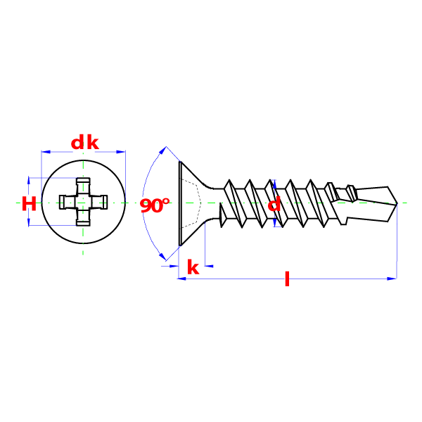 D7504P(O)H COUNTER SUNK SELFDRILLING SCREW ZP ST3,9X25MM (1000)